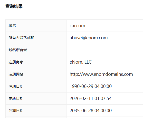 近日,全球域名市场再掀巨浪——继AI.com以7000万美元天价成交后,一枚注册于1990年、比AI.com还要年长三岁的极品两字母域名CAI.com,被中国“域名大王”蔡文胜低调收入囊中。消息一经流出,域名圈、加密圈、AI圈瞬间沸腾。这并非一次简单的域名收购,而是一场横跨两大万亿级赛道的战略卡位,一个足以定义“Crypto+AI”融合时代的超级符号,正在蔡文胜的手中从数字资产演变为生态基建。
