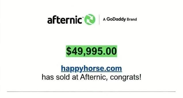 happyhorse. com 域名一口价49995美元成交。49995×7=就是349965元人民币!