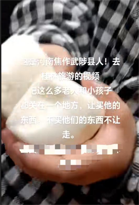 4月9日,有网友发布视频称,在桂林旅游,不买东西就不让走,只发白馒头吃。此事引发关注。