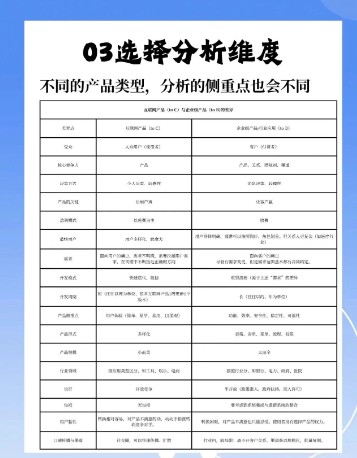 - 分析方法:比较法(横向对比竞品)、矩阵分析法(二维矩阵分析定位等)、竞品跟踪矩阵(从历史版本找规律)、功能拆解(拆分一至三级功能);还可通过探索需求(挖深层需求)、PEST分析(宏观环境找机会威胁)、波特五力模型(行业环境找机会威胁)、SWOT分析(找优劣势与机会威胁)开展。
